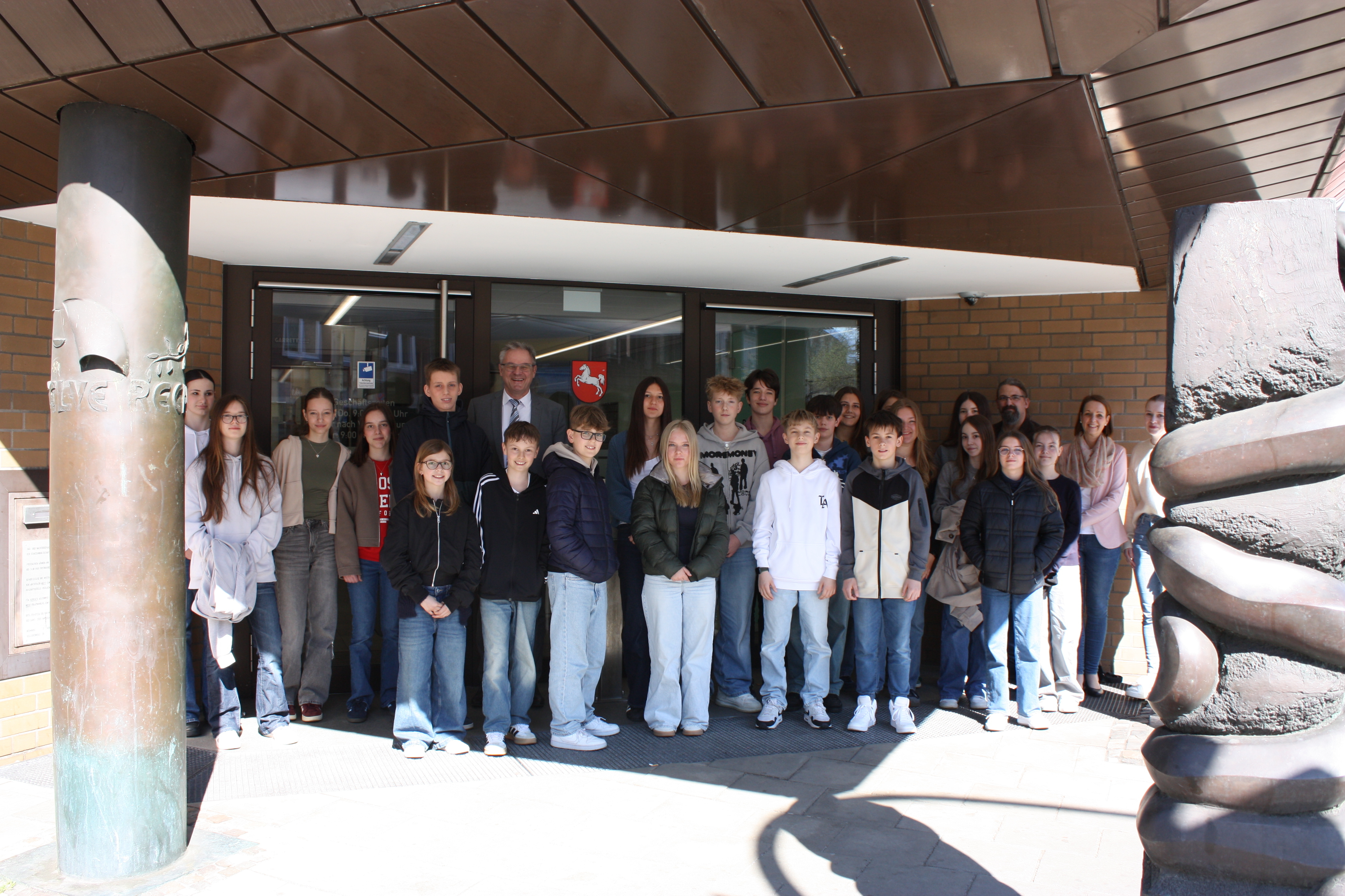 Anlässlich des heutigen Zukunftstages öffnete die Staatsanwaltschaft Osnabrück auch in diesem Jahr wieder ihre Türen für insgesamt 23 interessierte Schülerinnen und Schüler. Die Mädchen und Jungen erhielten dabei einen Blick hinter die Kulissen der Strafverfolgungsbehörde. Nach einer kurzen Einführung in die Tätigkeit eines Staatsanwaltes wurden alle Teilnehmerinnen und Teilnehmer persönlich durch den Behördenleiter, Herrn Leitenden Oberstaatsanwalt Bernard Südbeck, begrüßt. Im Anschluss besuchte die Gruppe eine Gerichtsverhandlung vor dem Amtsgericht Osnabrück, wo sie die Tätigkeit des Staatsanwalts bei der Sitzungsvertretung im Gerichtssaal hautnah miterleben konnte. Ein Kurzbesuch in den sonst meist verschlossenen Arrestzellen des Amtsgerichts gehört ebenfalls zum Tagesprogramm. Nach einer Stärkung mit einem kleinen Imbiss in den Räumen der Staatsanwaltschaft beendete schließlich ein Besuch bei den Justizwachtmeistern und der reich gefüllten Asservatenkammer der Staatsanwaltschaft den ereignisreichen Tag für unsere „Nachwuchskräfte“.